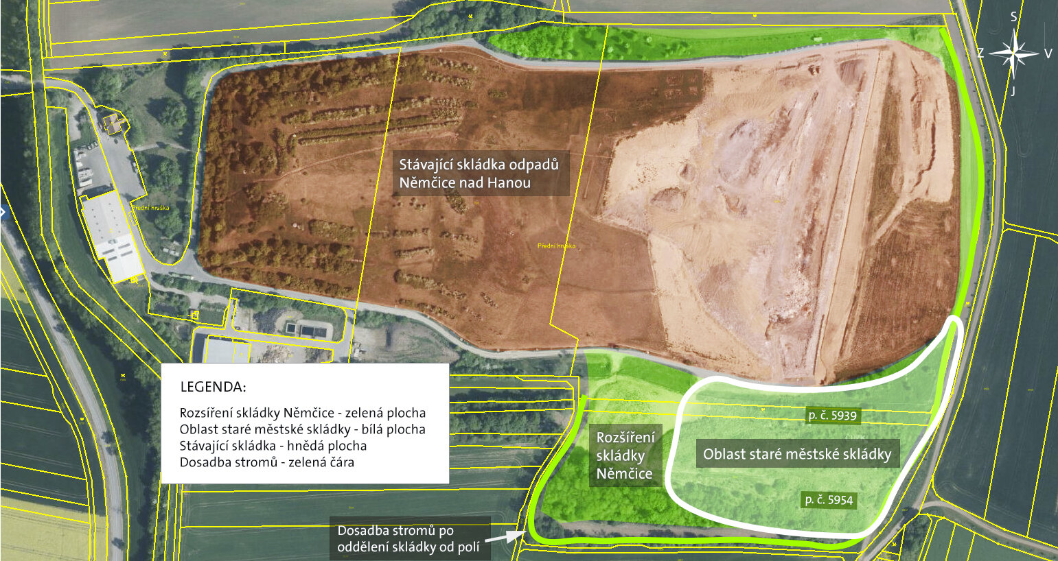 Tolik celková situace. Jak s tím souvisí stav skládky v Němčicích nad Hanou? Současná kapacita, a tedy životnost skládky, se blíží ke svému konci. Stávajícím tempem produkce odpadu se skládka zaplní v roce 2025. Otázkou tedy jednoduše je, kam po tomto datu ukládat odpady. Také další města a obce v ČR hledají odpověď na tuto otázku a hledají technologie využití odpadů. Infrastruktura, která musí být připravena nejpozději pro rok 2030, se zatím připravuje.